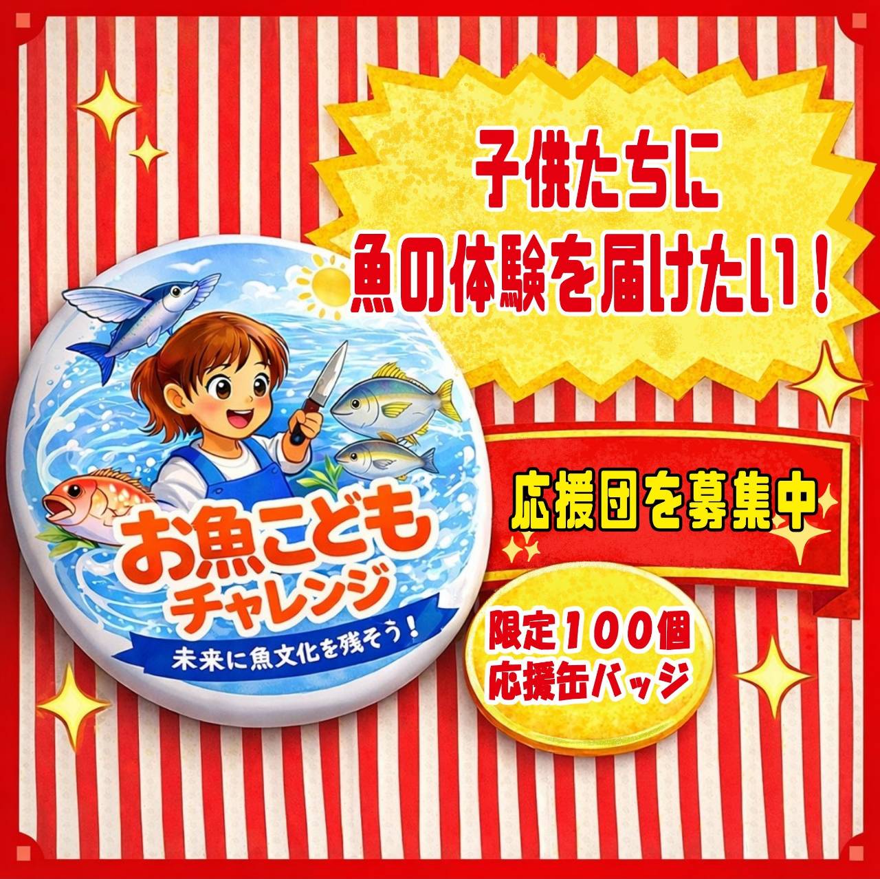 お魚こどもチャレンジ応援缶バッジ